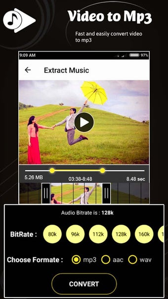Video till Mp3 Converter är ett användarvänligt verktyg som låter dig konvertera dina videor till MP3. Appen erbjuder olika alternativ för dig att välja mellan, inklusive bitrate och typ av ljud du vill skapa. Du kan också välja att stänga av ljudet på videon och göra en ringsignal av den.